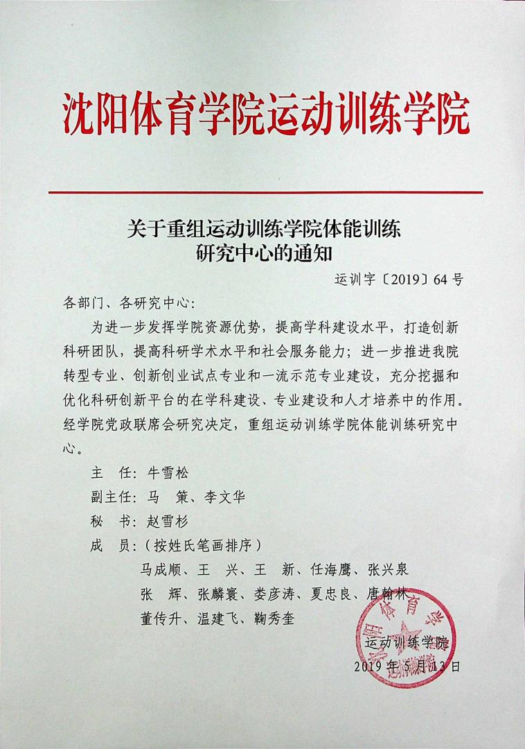关于重组伟德国际victor1946体能训练研究中心的通知
