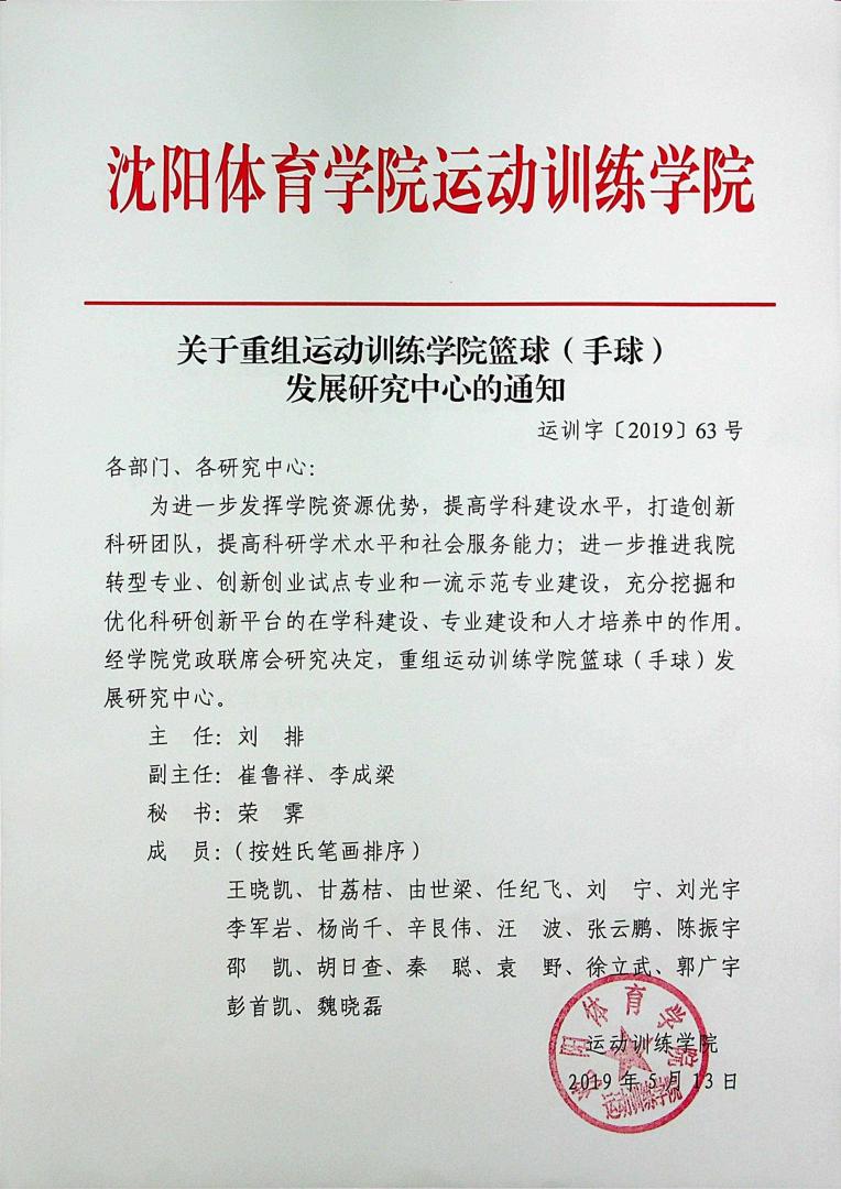 关于重组伟德国际victor1946篮球(手球)发展研究中心的通知