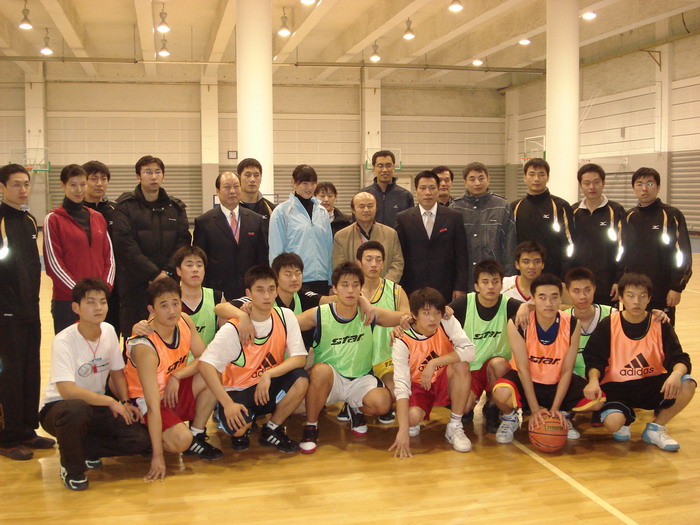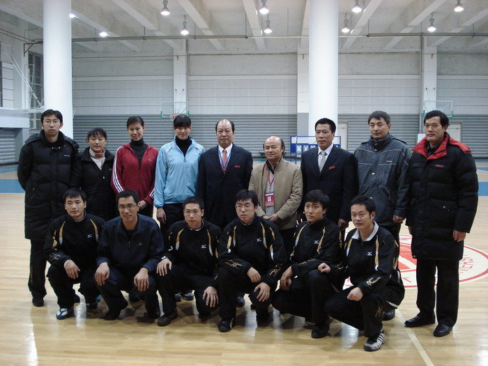 专家与参加测试员工合影 专家与篮球教研室老师合影