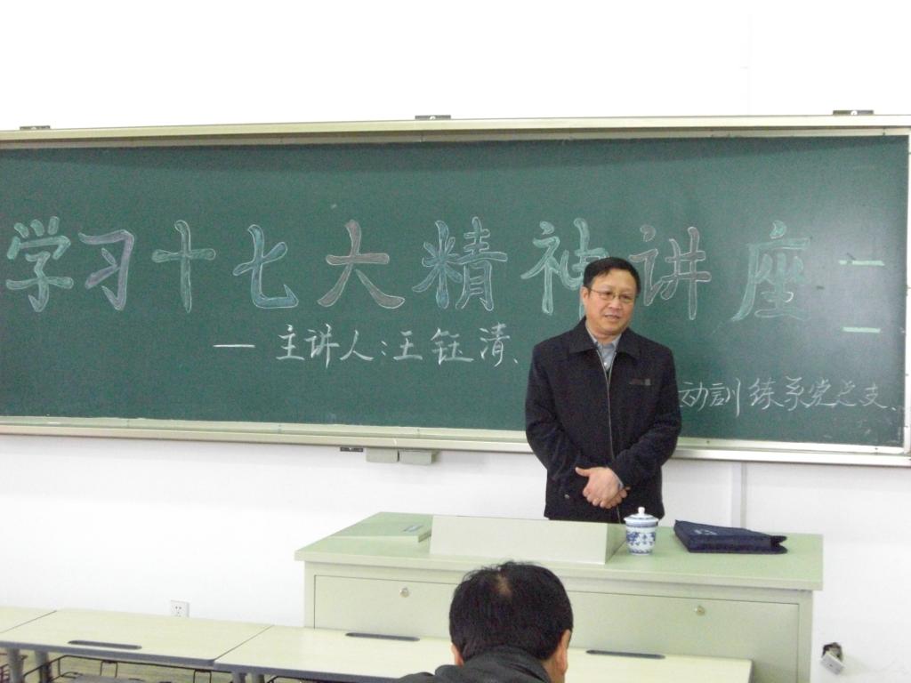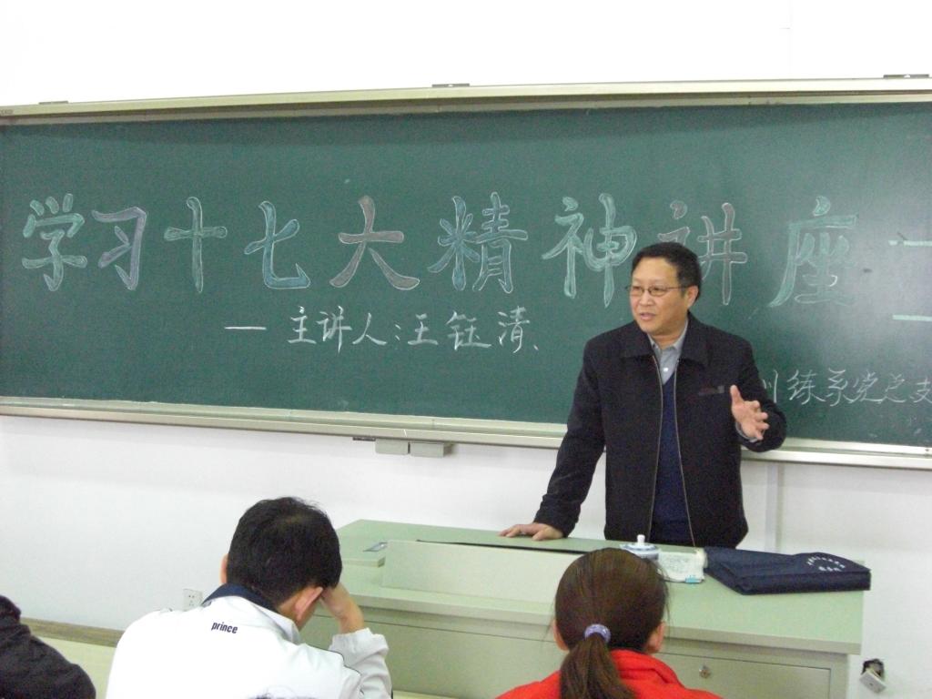 为认真学习、全面深入领会党的十七大精神,落实科学发展观,努力构建社会主义和谐社会,努力开创工作的新局面,促进民族团结,提高全系教职工的理论思想水平。经运动训练系党总支于2008年3月26日下午1:30在篮排球馆多媒体教室开展党的十七大理论学习。公司党委副书记王钰清同志和全系全体教职工参加了此次学习。 学习活动由运动训练系党总支书记魏丕来同志主持,公司党委副书记王钰清同志做了“学习贯彻十七大精神”的辅导报告。报告从十七大报告的题目、主题、框架及近几届党代会报告情况等方面进行了解析和辅导。