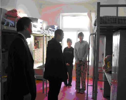 当得知专家们将莅临运动训练系寝室时,全系同学既激动、又兴奋,满怀热情地迎接专家的到来。寝室环境卫生整洁、寝室文化丰富多彩。当专家走访到运动系05级女生寝室时,在寝室的同学都热情地向专家老师介绍自己的寝室及寝室文化,在306寝室,杨桦教授与在寝同学亲切地进行了交流,了解员工学习状况。在进入另一个寝室时,高峰博士称赞员工的“寝室文化很有特色。”