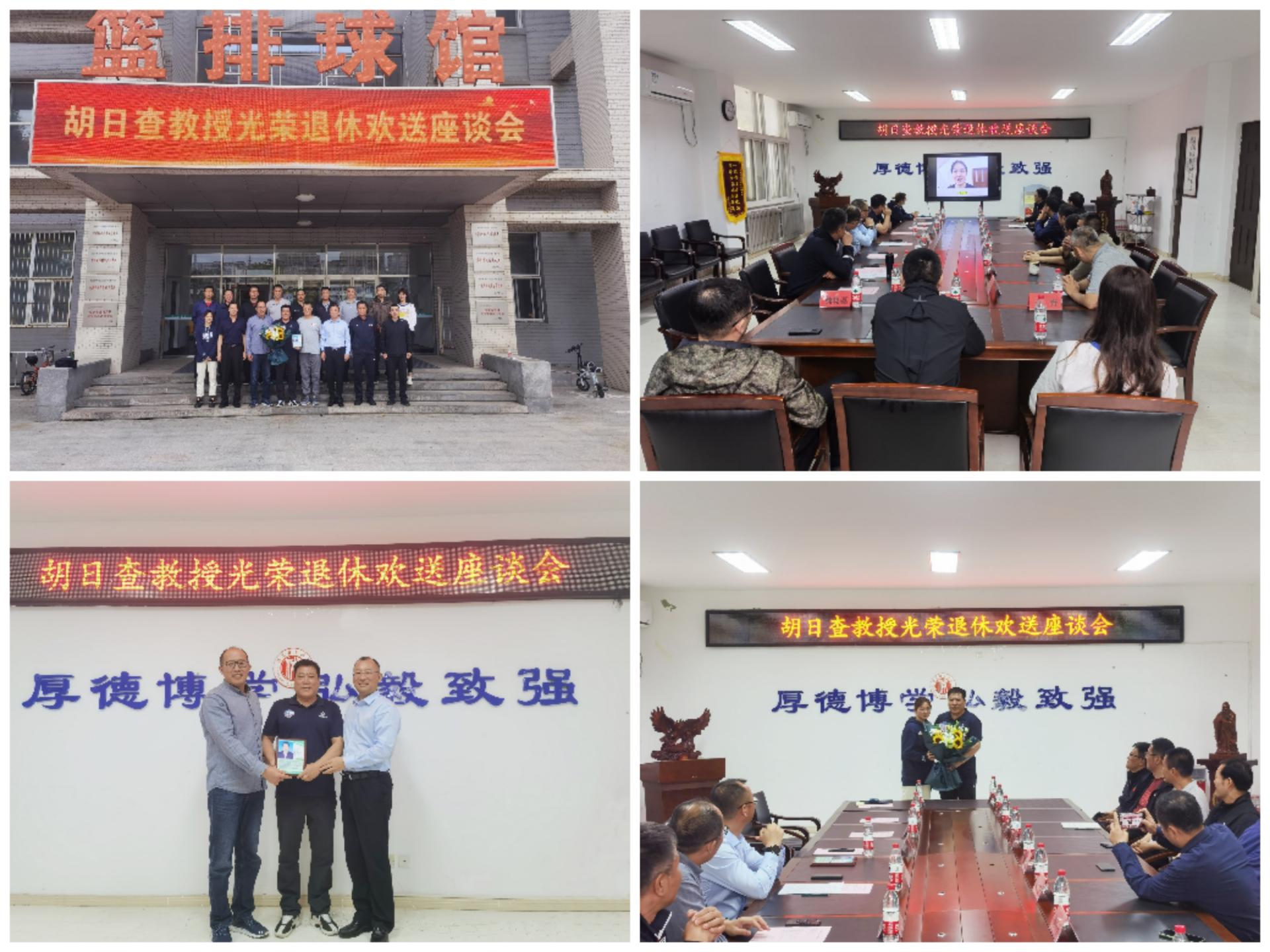 9月29日,胡日查教授光荣退休欢送座谈会在篮排馆一楼会议室召开,党委常委、公司党总支书记孙旭东、经理崔鲁祥、篮球教研室全体教师及员工代表参会,座谈会由副经理张麟寰主持。