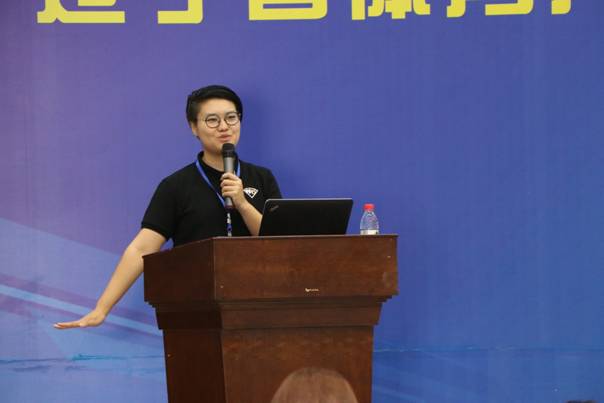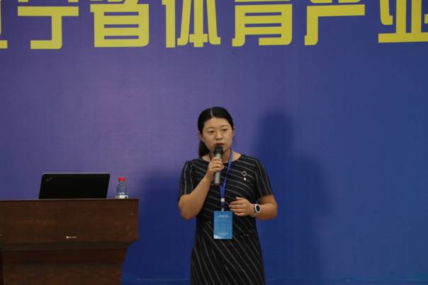 图为北京赫石体育文化发展有限公司人力资源经理、市场总监郝萌萌作报告