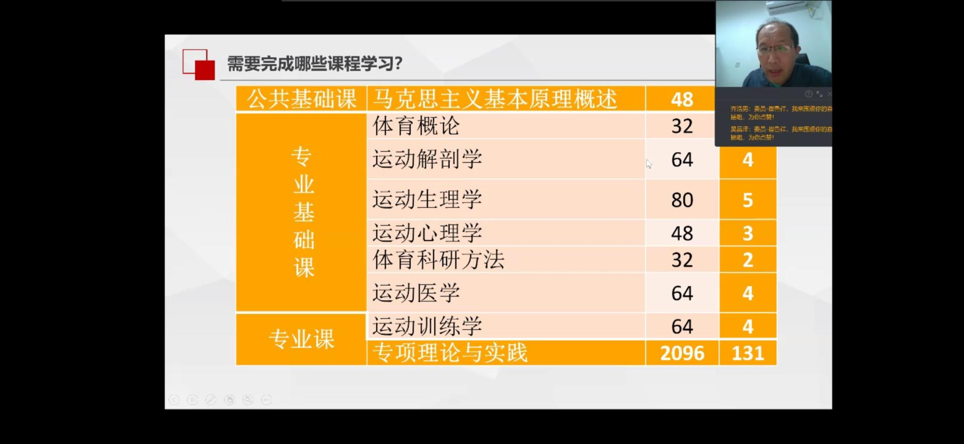 崔鲁祥详细解读了培养方案,让同学们进一步明晰了毕业和学分要求。同时要求同学们转变观念,要以老员工的标准要求自己,在训练之余拿出时间重视自己的学业,通过学习和研究,理论和实践相结合,增强个人的专业能力。为了使优秀运动员明确如何参与课程学习,崔鲁祥公布了本学期所开课程,同时将更适合于优秀运动员的混合式学习模式向同学们进行了介绍,线上学习、线上作业、线上辅导的混合式教学模式使得优秀运动员在比赛训练之余能够实现完整的课程学习。