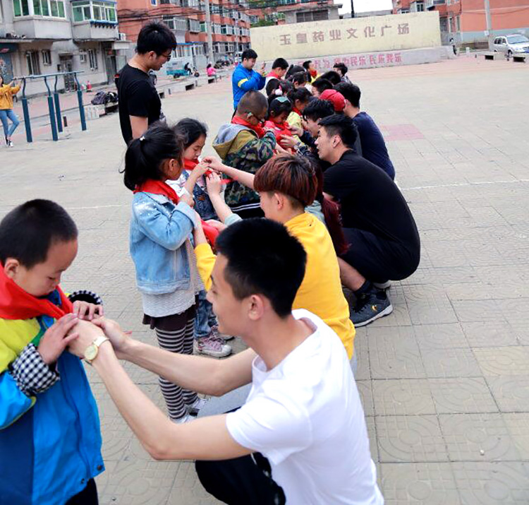 热身游戏结束后,伟德国际victor19462014级爱心团队的志愿者们亲手为爱心幼儿园的孩子们系上红领巾,告诉他们关于红领巾的故事,希望他们肩负使命的召唤,努力学习,积极锻炼,长大后积极向党组织靠拢,为建设中国特色社会主义贡献他们自己的一份力量。