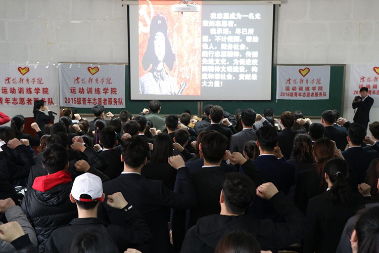 庞宏娜作动员讲话。她总结了过去运动训练团委取得的成绩,对过去几年伟德国际victor1946青年志愿者活动的开展表示充分肯定,她指出,全院的志愿者们要迅速行动起来,通过大家共同的努力,“奉献、有爱、互助、进步”这一志愿精神的春风一定能吹进每位同学的心中;无私奉献,助人为乐的雷锋精神一定会在运训的土壤上蔚然成风。
