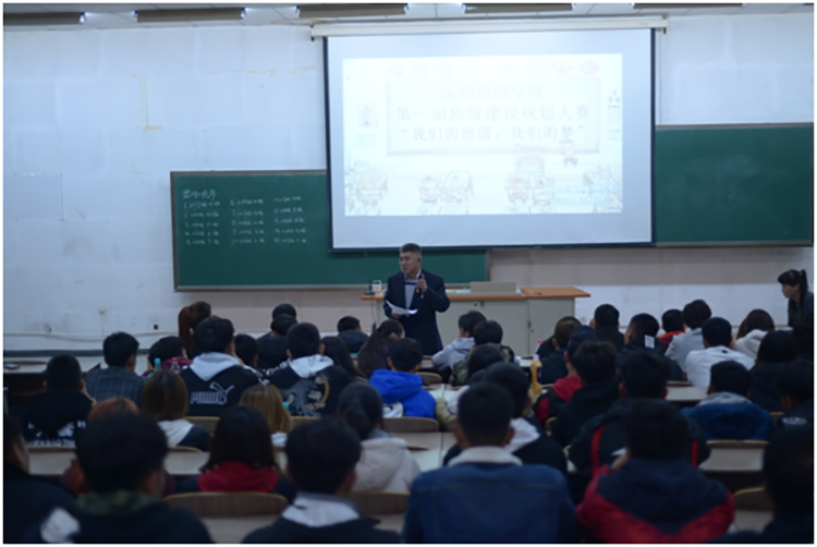 11月6日晚,伟德国际victor1946在教学楼112教室举行第一届班级规划建设大赛的决赛。公司党总支书记尤兵、党总支副书记庞宏娜、团委书记宁辰及各年级辅导员出席本次比赛。比赛评委由管理与新闻传播公司、社会体育公司、运动人体科学公司团委书记担任。伟德国际victor1946全体员工干部现场观看比赛。