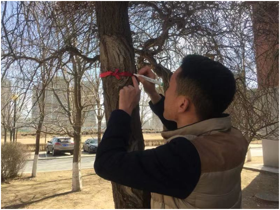 员工们将10号楼和12号楼门口的小树绑上丝带,并给小树写上名字,关注它们成长。“这次爱树护树的活动特别有意义,当夏天到来时我能骄傲的告诉其他同学这个树叫什么名字,同时自己能为美化校园做贡献力量。”参与活动的员工这样说。
